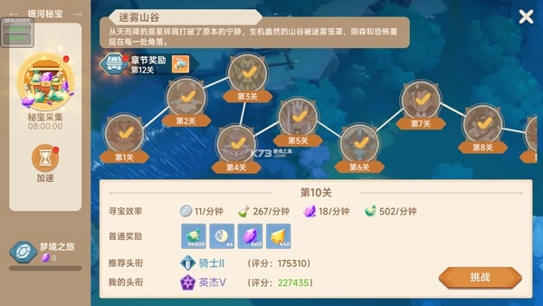 银河秘宝:单人活动。主要可以获取晨星碎屑(用于梦境之旅派遣)、经验等奖励。这是一个一层一层挑战的玩法,层数越高,挂机的效率越好。打到自己打不过为止。
