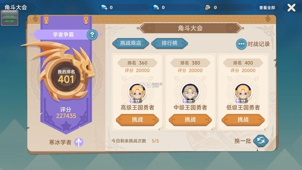 角斗大会:单人活动,职业之争。开启了就立马把排名打到最前面。因为名次越高,积分越高。积分可以在积分商店兑换奖励。