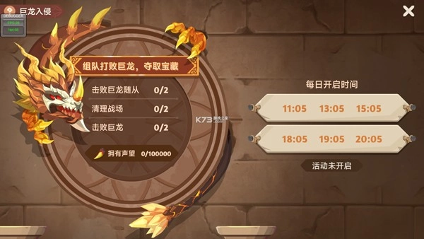 巨龙入侵:组队PVE玩法,组队击杀巨龙获取猎龙声望,全服提交猎龙声望到一定量,可以获取全服奖励。提交得越多,奖励越丰厚。