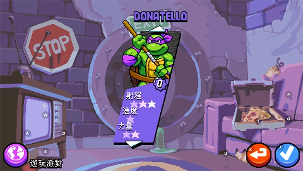 2、和那些标志性的忍者神龟角色一同游玩吧,其中就有我们的忍者神龟英雄里奥、拉斐尔、多纳泰罗和米开朗基罗!