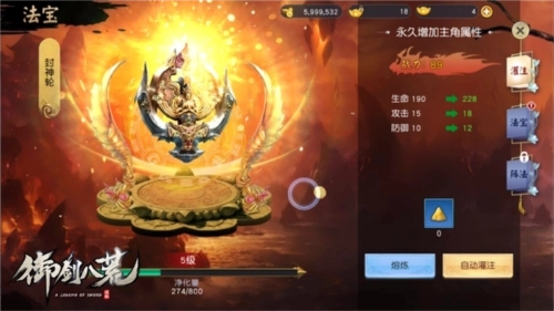 法宝系统总共分为12个阶位,每一阶都对应着独特的外观形态,像结魄灯、玄玉昆仑扇、东皇钟等都在其中。通过星耀石可以为人物带来永久的属性提升,而星耀石能够在秘境探索或挑战BOSS系统时获取。至于法宝的升级,则需要消耗法宝升阶丹,并且随着阶位的提升,所需消耗的升阶丹数量也会相应增加。另外,还有一种可以永久提升角色属性的方式,所需材料能从材料秘境、宗门活动、阵营活动、限时活动以及商城等多种途径获取。
