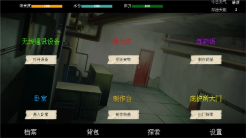 这款末日题材的文字生存游戏,在末世求生过程中有着丰富的资源等待你去收集,海量的材料可供你挑选使用,形形色色的物品道具需要你亲手制作,还有众多区域能够让你去探索并搜寻物资。你得小心翼翼地探索,躲避各类怪物的袭击,在不断的冒险中努力在这个末日世界里活下去。