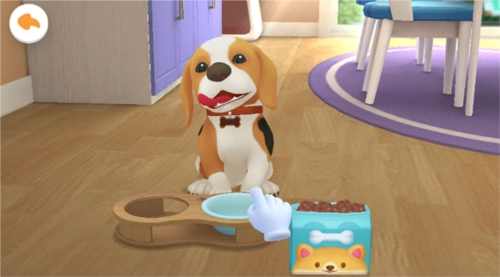 4、通过与JoJo玩耍,宝宝可以学会各种生活常识、生活技能,如与JoJo一起喂养小狗Bingo。