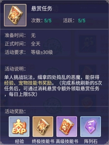 单人模式下完成玩法可获取经验、终极技能书、高级技能书以及阵列石。在这些奖励中,终极技能书尤为关键,并且能够进行交易。获取悬赏令的途径包括神格系统下的探险功能,或者直接在商店购买。如果条件允许,建议每天把额外五次的次数都用完。