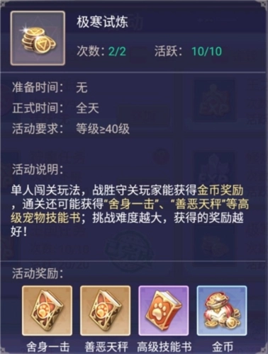 单人闯关玩法是获取金币的重要途径之一,完成任务不仅能得到大量金币,还有机会获得高级技能书和特殊技能书,绝对是不容错过的单人任务。