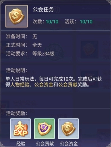 少许经验,公会贡献是提升生活技能的必备资源,后续肯定会用到。要是公会资金不足,可能会导致公会解散。而这个公会任务能获得经验、公会贡献和公会资金,对公会玩家而言,完成它是很有必要的。