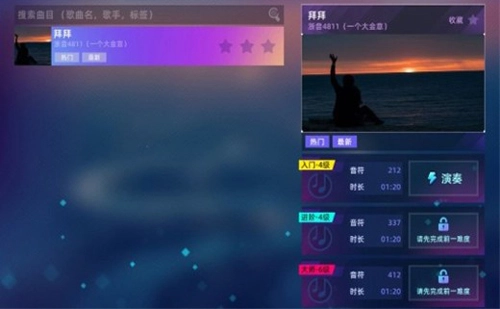 2、这里有海量丰富的音乐可供挑选,每一首曲目都设置了不同的冒险难度等级,你可以根据自己的喜好和能力自由选择。