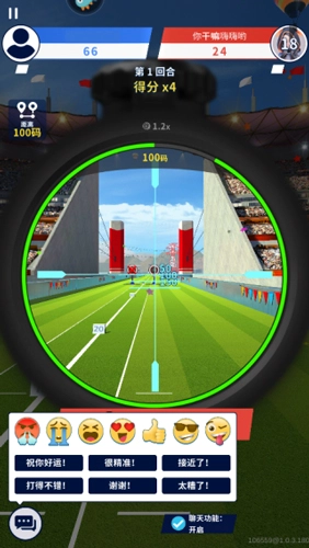 6、依据距离挑选对应的码数后松手射击,点击下方的言语能够发送图案或短句。
