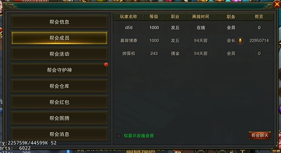 可以在成员列表中查看帮会成员信息,进行职位变更等操作。