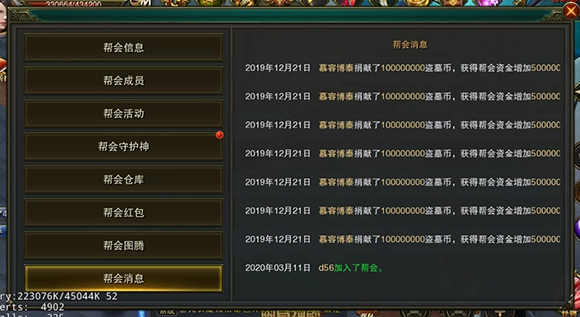 帮会消息中可以查看所有成员对帮会进行的各种操作记录。