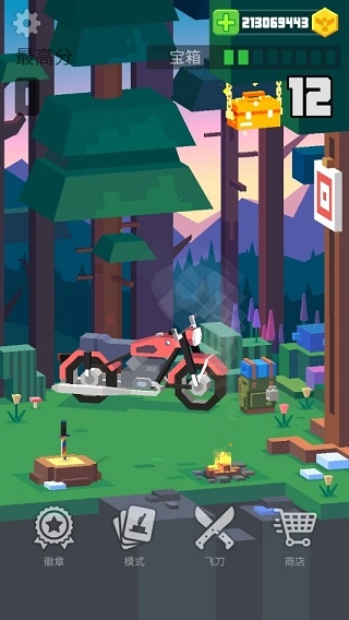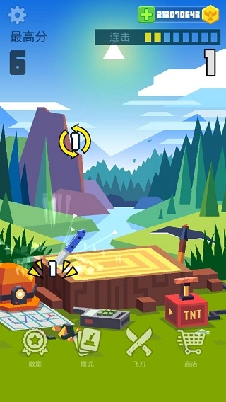 游戏中共有打靶模式、攀爬模式、过关模式和连击模式4种玩法,4种模式各有玩法,也有着自己的规则和特点。不过作为游戏的起点、在进行其他的玩法和尝试其他道具之前最好在连击模式中熟悉刀具的特点和重量后再行游戏。