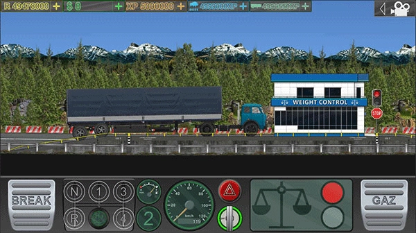 4、点击游戏里的左右按钮来操控卡车移动,你的卡车还能进行换挡操作,你可以自由解锁各类不同的卡车,并在不同的游戏地图中驾驶。
