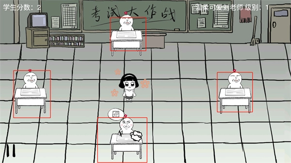 《考试大作战》是一款画风极具特色的益智类“沙雕”小游戏。游戏中,玩家需点击其他同学的课桌,通过车轮战式的纸条传递来“抄取”高分。不过作弊过程颇具挑战:考试期间监考老师会不间断巡视,玩家得时刻留意全场局势变化,抓住老师视野盲区的时机快速传递答案,同时保持镇定不被察觉,这样才能有效提高作弊的成功率。