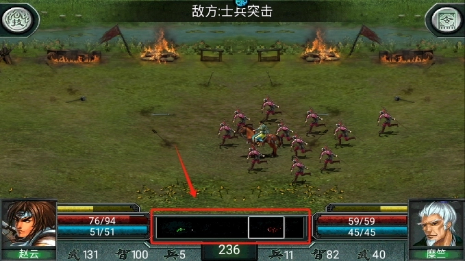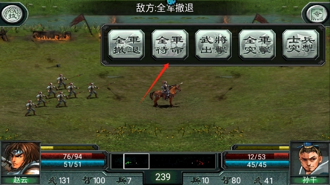 战斗操控由3大部分组成,技能指令,武将属性和战场属性。