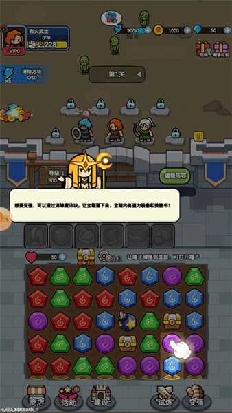 游戏里多样的英雄设定,能让你拥有无限的策略组合。你可以借助消除玩法获取装备与道具,为角色增添额外属性,助力他们在战场上势不可挡。每一次胜利都会解锁新的挑战和奖励,驱动你去探索更多未涉足的区域。