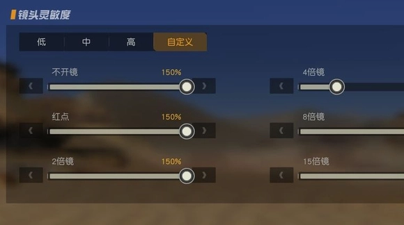 4、开火的镜头的灵敏度总共有6种,不开镜和红点调到最大,余下的可以按照自己的手感来调,开镜不容易瞄准敌人。