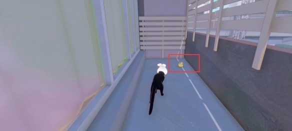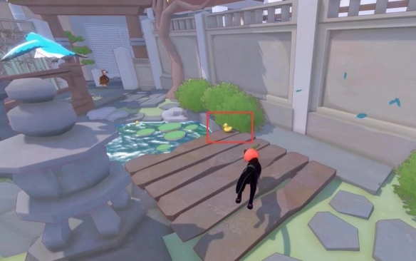 首先前往下图所示的位置,沿着墙上的藤蔓向上攀爬,到达房顶后就能发现一只漂浮在空中的鸭子。