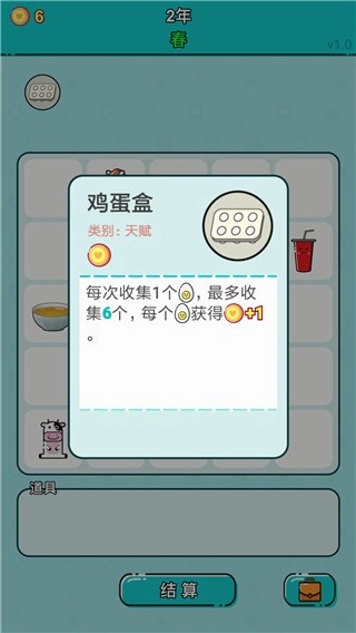 3、鸡蛋盒,每次收集一枚鸡蛋,最终可收集六枚,每收集一枚就能得到一个金币。