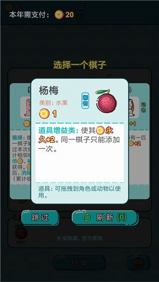 4、杨梅,可永久性增加两个金币,同一个棋子只能加一次。