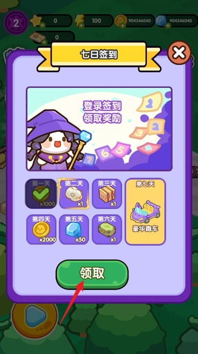 1、首先进入游戏,点击领取签到奖励;