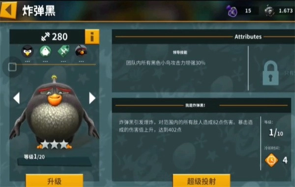 3、炸弹黑:团队内所有黑色小鸟攻击力增强30%。