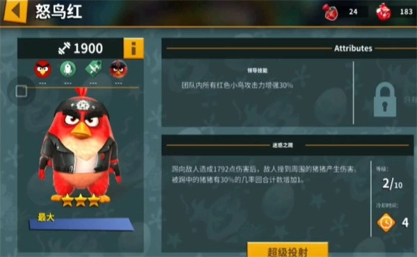 4、怒鸟红:团队内所有红色小鸟攻击力增强30%。