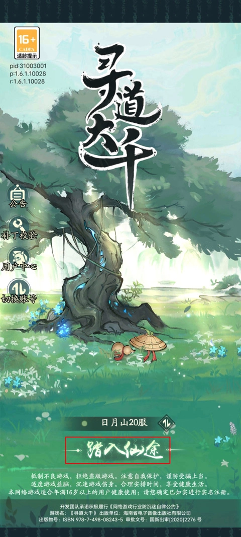 1、打开寻道大千,登录账号后点击“”踏入仙途”进入游戏;