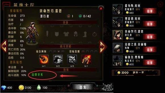招募英雄时要留意是否有自带的绿色正面特质,这类英雄才靠谱(可别去招募带红色特质的英雄),长按特质就能查看其具体作用