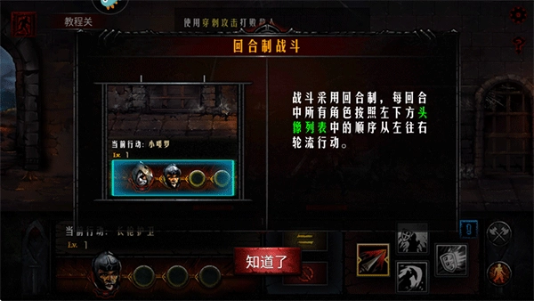 6、战斗采用回合制,每回合中所有角色按照左下方头像列表中的顺序从左往右轮流行动;