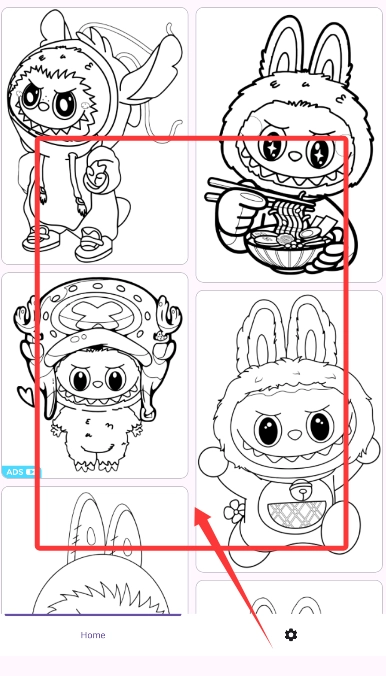 1、游戏启动后,将看到各种可爱的拉布布角色线稿。