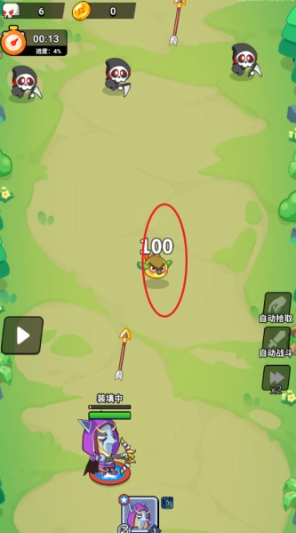 点击怪物方向,发动英雄技能,消灭怪物