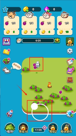 1、找到游戏界面底部的植物图标,点击它后挑选你想种的作物。接着把选好的作物拖到田地里空着的地方,这样就能完成种植了。