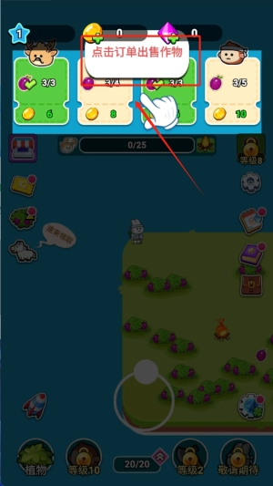 2、当订单内的作物数量满足要求时,点击订单按钮提交订单,即可获取奖励。