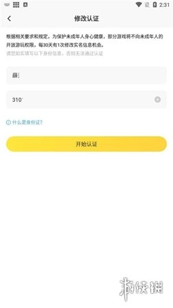4、随后,在弹出的页面里填写你最新的实名信息。填写完成后,点击“开始认证”按钮就能完成修改。