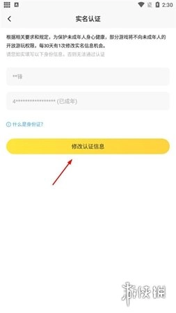 3、进入实名认证页面后,你会看到“修改认证信息”的按钮,请点击它,如图所示。