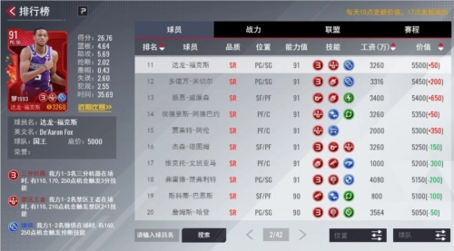 比赛期间每日15点更新球员价值及评分,球员现实表现和游戏内球员评分+战力强挂钩。