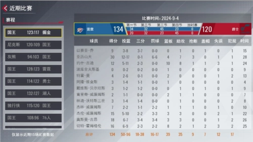 球员场均数据同步NBA,场均数据、近期比赛状态一览无余。