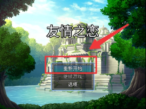 1、打开友情之恋,点击“重新开始”。