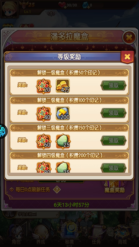 2、然后参与潘多拉魔盒,完成指定任务即可领取大量豪礼。