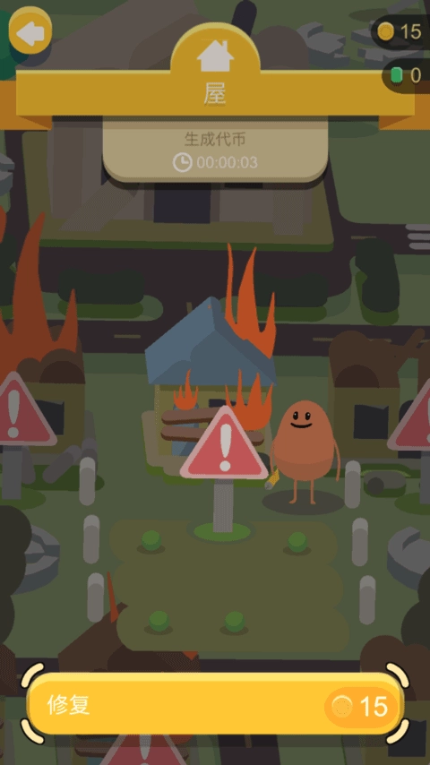 2、房屋还需要通过闯关之后获得的金币进行修复。