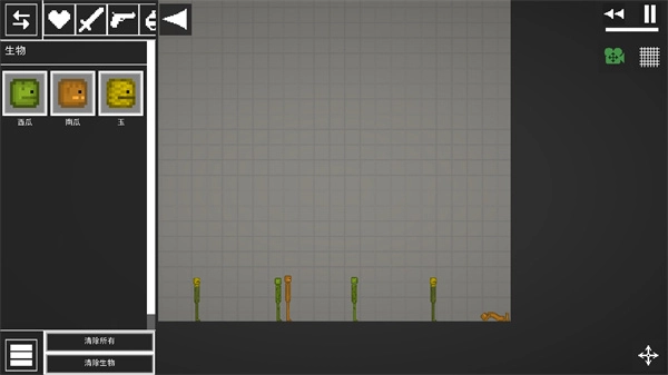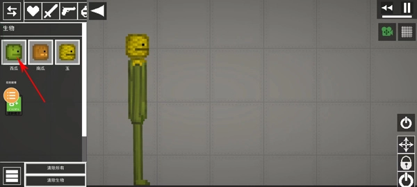1、进入游戏之后,首先我们需要创建一个生物人,在左上角找到爱心图标点击,然后在西瓜、南瓜、玉中选择一个生物人;