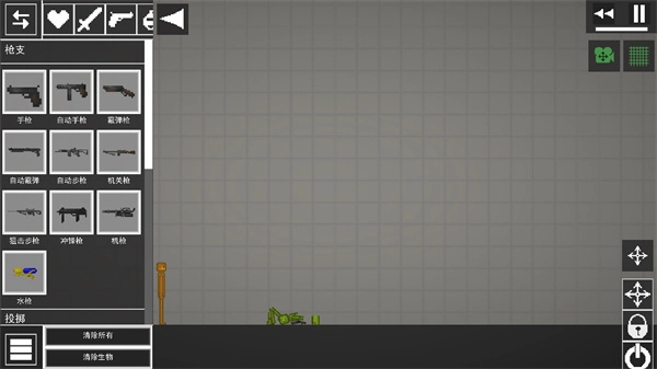 4、胳膊在空中停住后,我们要在左上角点击枪械图标来选择枪械;