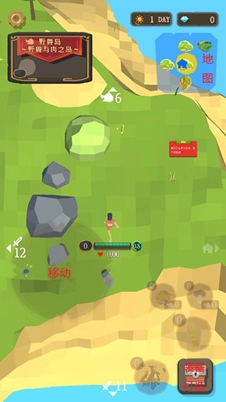 玩家开始游戏之后,会在一个小岛上醒来,需要控制人物寻找岛上的食物或者材料。