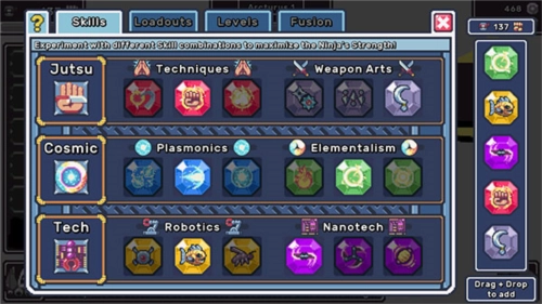 《空闲忍者大师》是一款创新融合的点击式闲置RPG游戏,玩家将穿梭浩瀚银河,磨砺忍术技艺,直面猎枪威胁,以灵动点击击溃太空魔物。在这场别具一格的休闲RPG冒险里,为帝国寻仇雪恨,开启前所未有的星际征程。游戏运用细腻的像素艺术风格,像素角色活灵活现,打造出宏大的宇宙世界,带来独具特色的RPG体验。