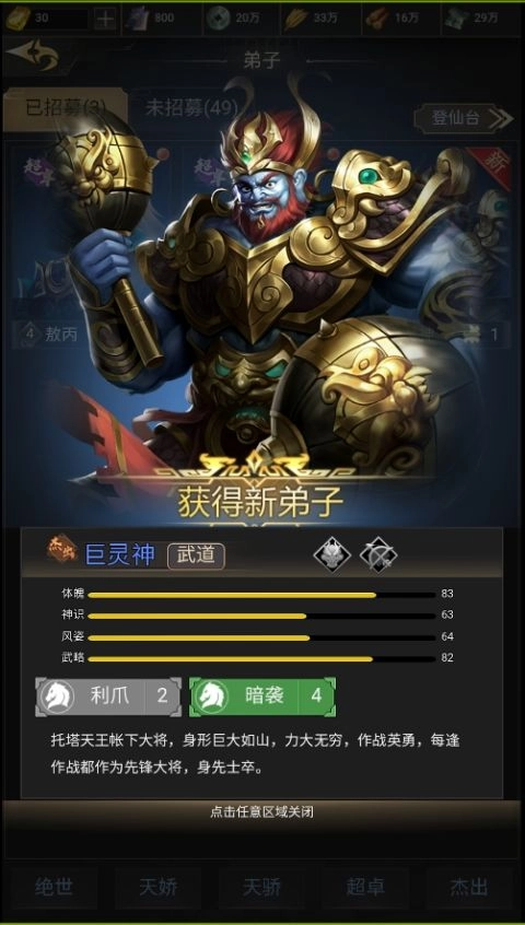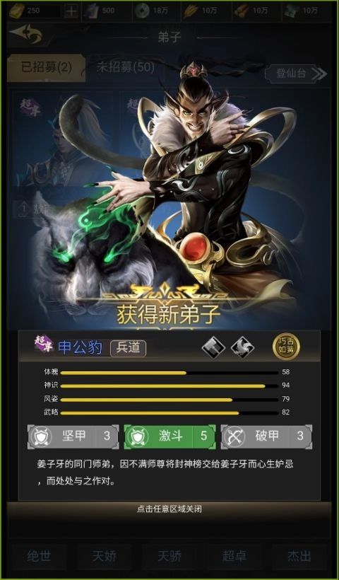 登录即送紫色英雄(敖丙、公孙豹)共同上阵形成合击技能