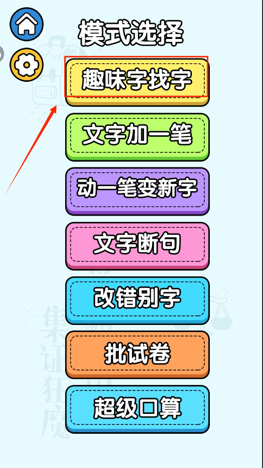 2、多种游戏模式,可以任意选择感兴趣的,比如趣味字找字。