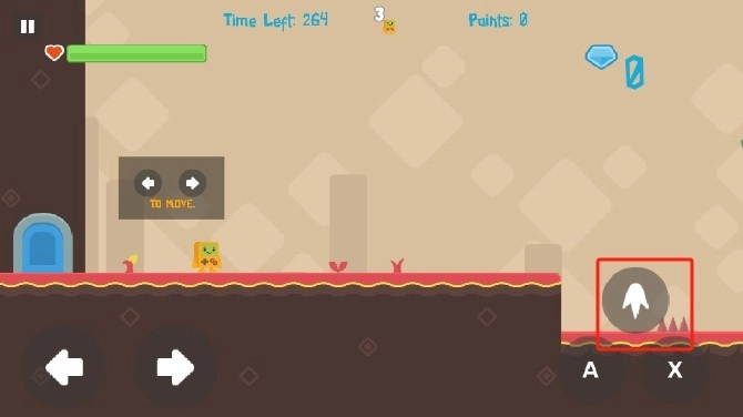 4、右边的“A”按钮可以跳跃。