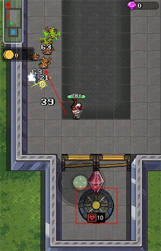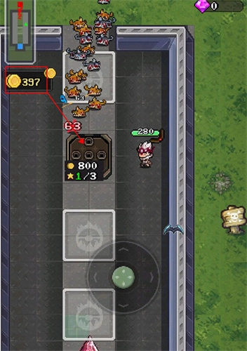 1、游戏里角色的移动通过虚拟摇杆来操控,一旦敌人进入攻击范围,角色就会自动发起攻击;