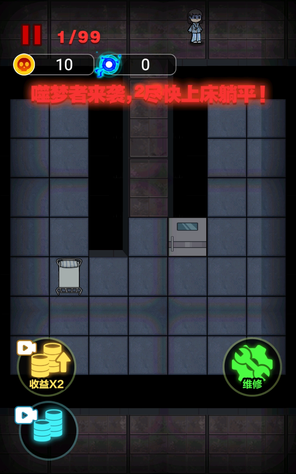 -噬梦者攻击门的时候我们可以点击右下角的维修。