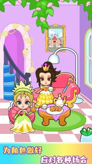 1、童话王国沉浸体验:游戏打造了一个完整的童话世界观,玩家能够探索城堡的每一处角落,体验真实的公主生活。精心设计的场景背景与人物角色,搭配柔和的色调,营造出温馨浪漫的游戏氛围。